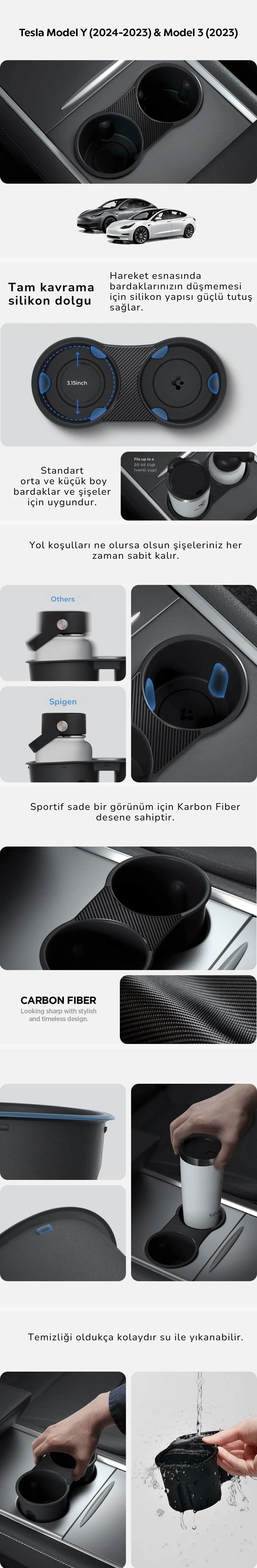 Spigen Tesla Model Y (2024-2023) & Model 3 (2023) Cup Holder Bardaklık Tutucu T0210 Black