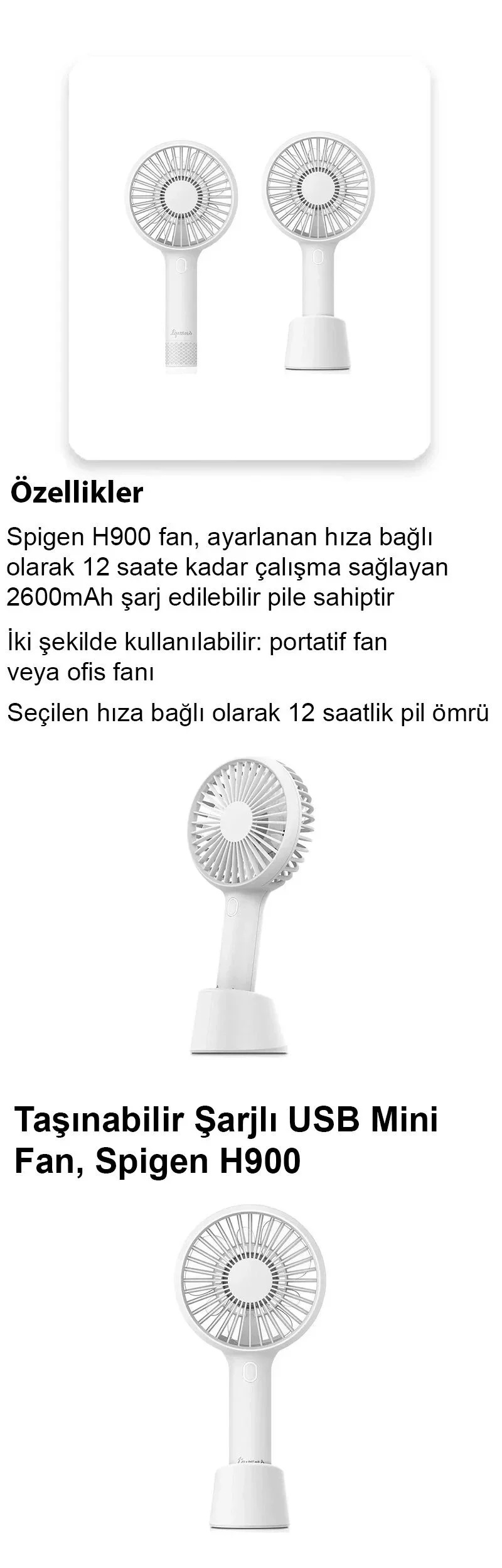 Spigen Tquens H900 Taşınılabilir Fan ile ferahlığınız hiç eksilmesin. Güçlü motoru ve dayanıklı Pili 12 saate kadar kullanım sunar.