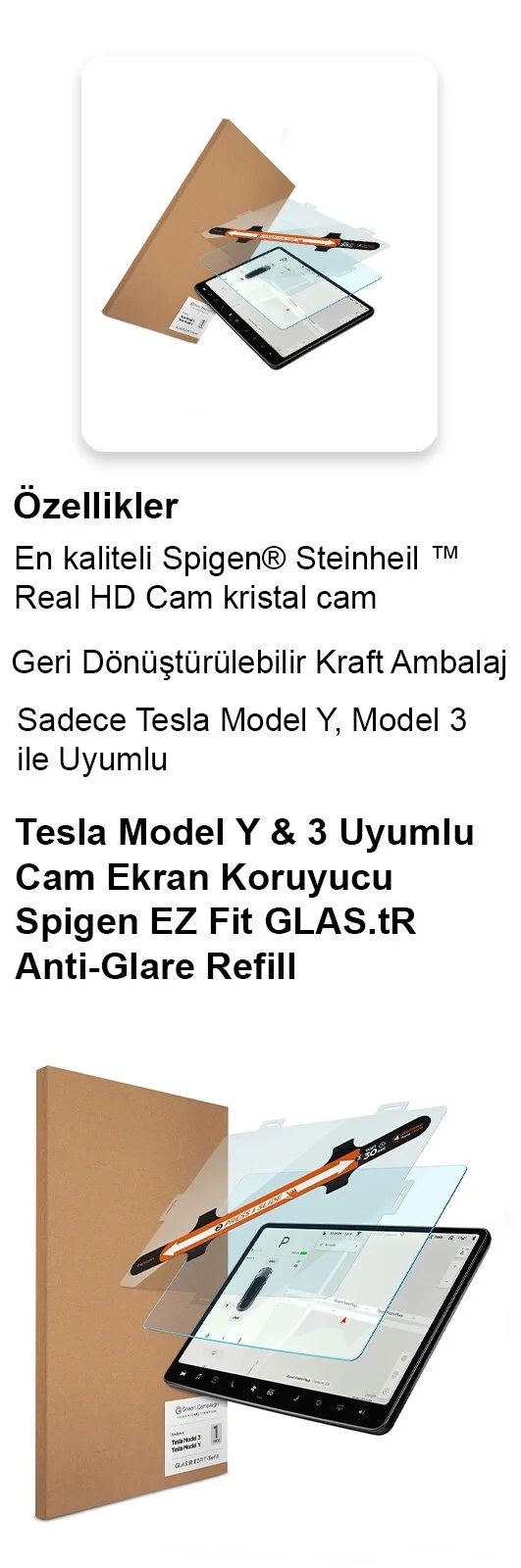 Spigen Tesla Model Y (2024-2023) & Model 3 (2023) Cam Ekran Koruyucu GLAS.tR EZ Fit Anti-Glare Refill